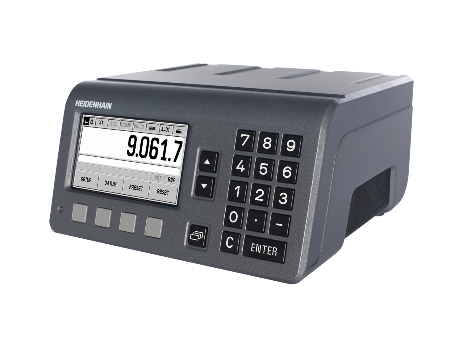 HIEDENHAIN offers the right digital readout for every type of machine, including milling machines, lathes, grinding machines, drilling machines, and radial drilling machines. A splash-water-resistant front panel and a rugged cast-metal housing equip them to handle harsh everday shopfloor conditions.